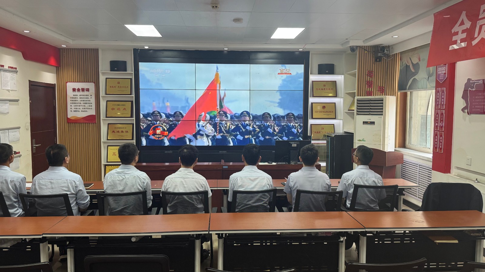 歷史燭照未來(lái),精神永續(xù)傳承。為深切緬懷在抗日戰(zhàn)爭(zhēng)中英勇獻(xiàn)身的革命先烈,大力弘揚(yáng)偉大的抗戰(zhàn)精神,引導(dǎo)全體黨員、職工銘記光輝歷史、堅(jiān)定理想信念、強(qiáng)化責(zé)任擔(dān)當(dāng),9月3日,機(jī)運(yùn)工區(qū)黨支部組織開(kāi)展了“銘記歷史偉業(yè),傳承紅色基因”主題黨日活動(dòng),組織全體黨員集中觀看紀(jì)念中國(guó)人民抗日戰(zhàn)爭(zhēng)暨世界反法西斯戰(zhàn)爭(zhēng)勝利80周年閱兵儀式現(xiàn)場(chǎng)直播。上午九時(shí)整,機(jī)運(yùn)工區(qū)全體黨懷著無(wú)比崇敬與激動(dòng)的心情,目光齊聚屏幕。伴隨著激昂雄壯的國(guó)歌奏響,鮮艷的五星紅旗在天安門(mén)廣場(chǎng)冉冉升起,大家心潮澎湃,肅然起敬。隨后,規(guī)模宏大、氣勢(shì)磅礴的閱兵式正式開(kāi)始。屏幕上,一個(gè)個(gè)整齊劃一、威武雄壯的徒步方隊(duì),邁著鏗鏘有力、撼人心魄的步伐走過(guò)檢閱臺(tái),堅(jiān)毅的眼神、挺拔的身姿,充分展現(xiàn)了新時(shí)代軍人聽(tīng)黨指揮的忠誠(chéng)品格和能打勝仗的過(guò)硬本領(lǐng);一列列代表著國(guó)家科技實(shí)力與國(guó)防現(xiàn)代化建設(shè)最新成果的裝備方隊(duì),鐵流滾滾,氣勢(shì)如虹,尖端武器依次亮相,彰顯了捍衛(wèi)國(guó)家主權(quán)、安全、發(fā)展利益的堅(jiān)定決心與強(qiáng)大能力;雄鷹呼嘯,劃破長(zhǎng)空,戰(zhàn)機(jī)編隊(duì)以精準(zhǔn)的隊(duì)形和磅礴的氣勢(shì)接受檢閱,描繪出壯美的藍(lán)天畫(huà)卷,宣示著捍衛(wèi)國(guó)家領(lǐng)空安全的鋼鐵意志。整個(gè)閱兵過(guò)程,秩序井然、威武雄壯、氣勢(shì)恢宏,生動(dòng)詮釋了人民軍隊(duì)“聽(tīng)黨指揮、能打勝仗、作風(fēng)優(yōu)良”的強(qiáng)軍目標(biāo),全方位展示了在黨的堅(jiān)強(qiáng)領(lǐng)導(dǎo)下,國(guó)家日益強(qiáng)大的綜合國(guó)力和維護(hù)世界和平的堅(jiān)定信念。屏幕前,黨員們?nèi)褙炞ⅲ瑹o(wú)不被這震撼人心的場(chǎng)面所感染,民族自豪感與榮譽(yù)感油然而生,現(xiàn)場(chǎng)不時(shí)響起由衷的贊嘆和熱烈的掌聲。通過(guò)本次“銘記歷史偉業(yè),傳承紅色基因”主題黨日活動(dòng),機(jī)運(yùn)工區(qū)黨支部全體黨員經(jīng)歷了一次深刻的精神淬煉與思想升華。大家的歷史使命感、民族自豪感、崗位責(zé)任感得到顯著增強(qiáng),紛紛表示以更加飽滿(mǎn)昂揚(yáng)的精神狀態(tài)、更加求真務(wù)實(shí)的工作作風(fēng)、更加開(kāi)拓創(chuàng)新的進(jìn)取意識(shí),恪盡職守,銳意進(jìn)取,全力以赴保障原煤運(yùn)輸安全高效,為工區(qū)及公司的持續(xù)高質(zhì)量發(fā)展貢獻(xiàn)全部力量!